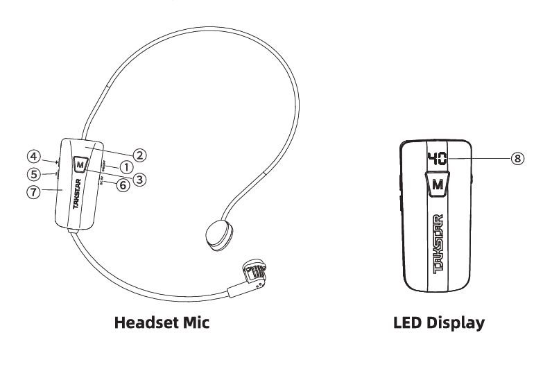 - Đầu tiên, tắt nguồn cả micro đầu và loa trợ giảng không dây Takstar E500W. Tiếp theo, bật nguồn micro đầu, nhấn giữ nút [M] của micro trong 3 giây cho đến khi màn hình LED của nó hiển thị một vòng tròn. Sau đó, ngay lập tức bật nguồn loa trợ giảng, chờ cho đến khi vòng tròn LED trên micro đầu chuyển thành một số tĩnh.
